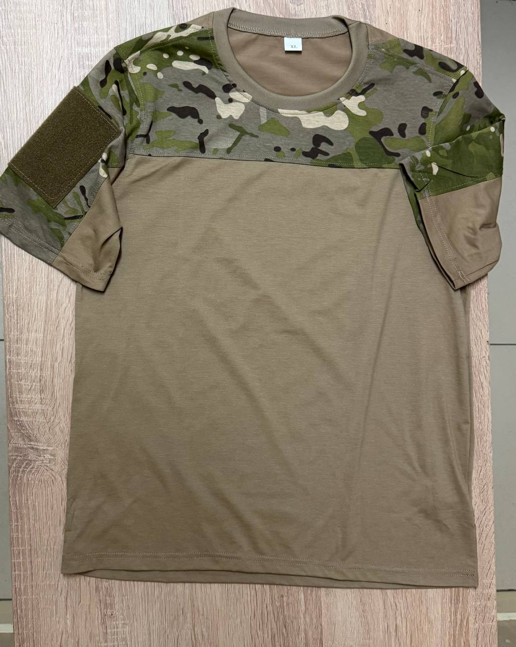 Основная часть футболки выполнена в однотонном цвете койот, обеспечивающем превосходную маскировку в пустынных и степных ландшафтах, а также стильный внешний вид для повседневного ношения. Рукава и плечевая зона изготовлены из прочной ткани с паттерном Multicam, который славится своей эффективностью в разнообразных природных условиях. Такое сочетание материалов и расцветок не только создает динамичный и узнаваемый образ, но и значительно повышает функциональность изделия.