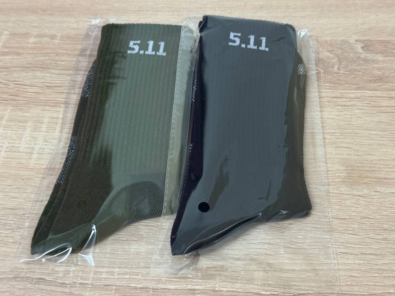 Логотип "5.11" аккуратно вышит контрастной нитью на внешней стороне голенища, подчеркивая принадлежность к известному бренду тактической экипировки. Носки доступны в нескольких размерах для идеальной посадки: