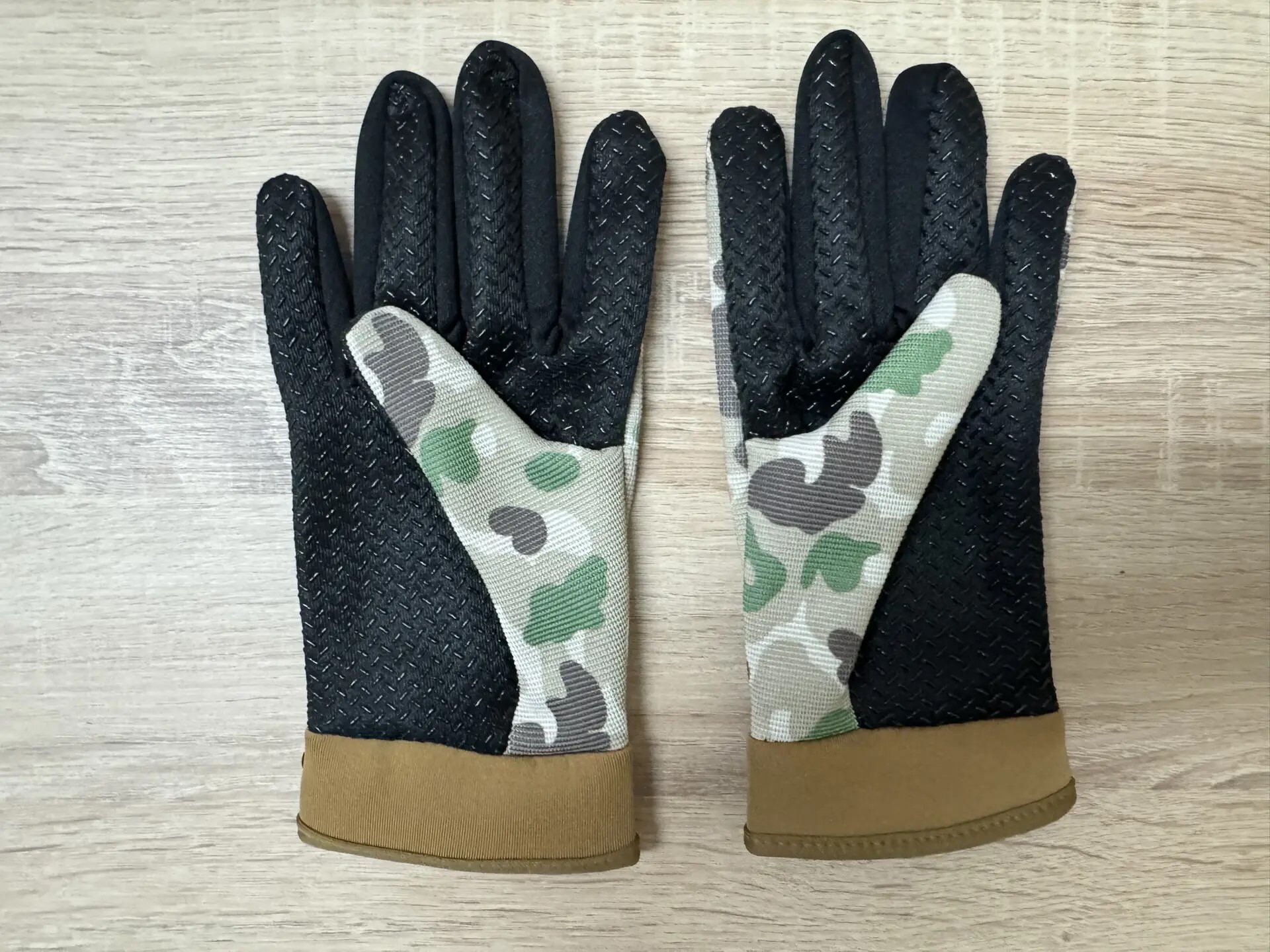 Особое внимание уделено зоне ладони: она выполнена из износостойкого материала с выраженной текстурой и узором, обеспечивающим усиленный, нескользящий хват. Это позволяет уверенно удерживать предметы, инструменты или снаряжение даже во влажных условиях. Кончики пальцев имеют дополнительное усиление для увеличения срока службы и защиты наиболее нагруженных участков.