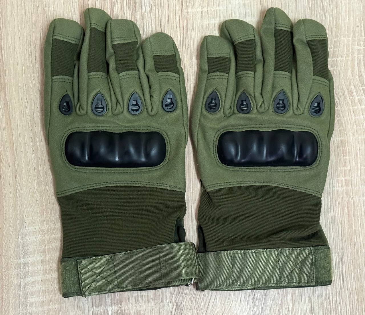 Верхняя часть перчаток выполнена из прочного, износостойкого синтетического материала, имитирующего замшу, что придает изделию долговечность и устойчивость к внешним воздействиям. Этот материал эффективно сопротивляется истиранию и незначительным механическим повреждениям, а также легко очищается от загрязнений. Основной цвет перчаток – насыщенный оливковый, который гармонично сочетается с различной тактической и outdoor-экипировкой.