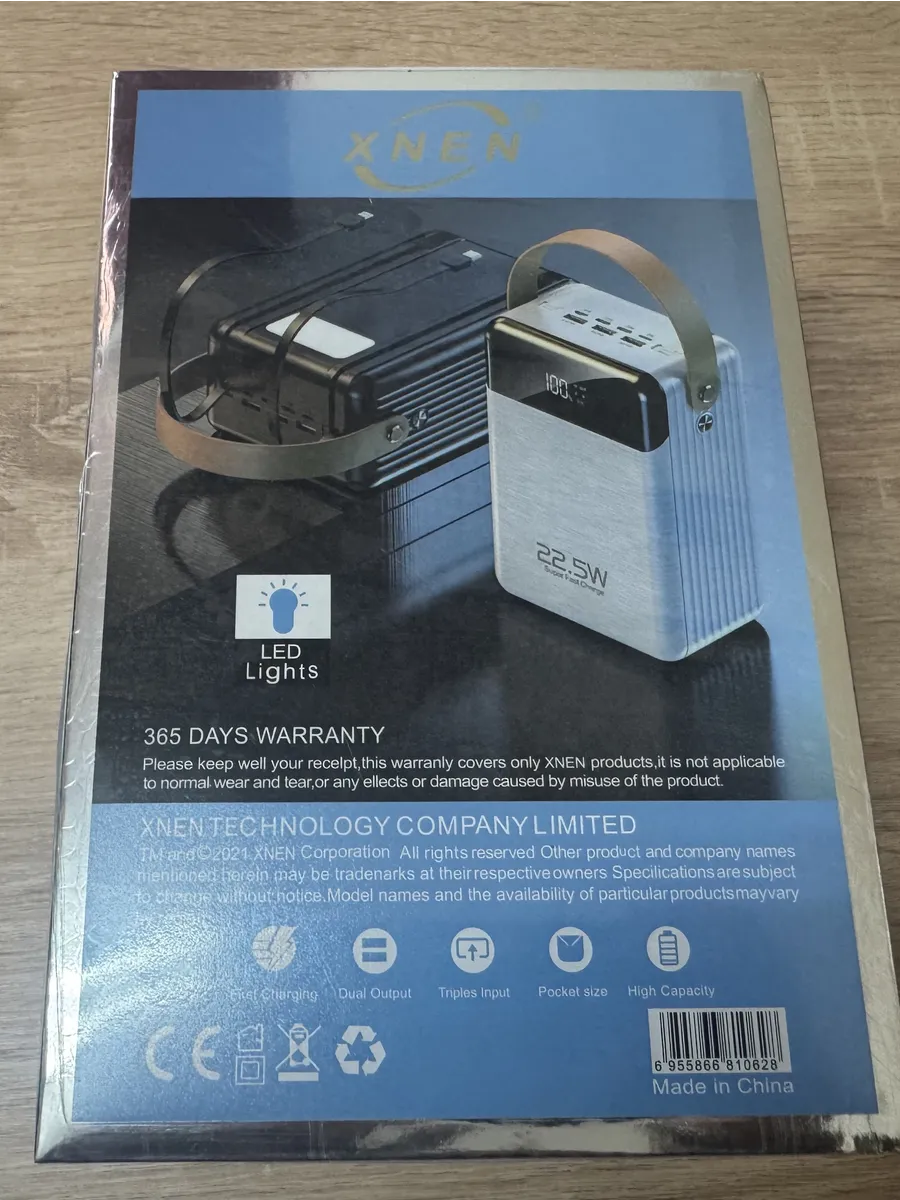 Устройство поддерживает передовую технологию быстрой зарядки Power Delivery (PD) с максимальной выходной мощностью 22.5 Вт, что позволяет значительно сократить время, необходимое для восстановления заряда совместимых устройств. В арсенале XNEN XN-105S находятся три выходных порта USB, предоставляя возможность одновременной зарядки нескольких электронных приборов без потери скорости или эффективности. Дополнительное удобство обеспечивается наличием двух встроенных кабелей, которые исключают необходимость носить с собой дополнительные аксессуары для различных типов разъемов, таких как Lightning и USB Type-C/Micro-USB. Сам повербанк заряжается через четыре различных входных порта, демонстрируя исключительную гибкость и универсальность в подборе источников питания, что обеспечивает его готовность к использованию практически в любых условиях. Интегрированный цифровой дисплей точно отображает текущий уровень заряда аккумулятора в процентах, обеспечивая пользователя актуальной и точной информацией о состоянии устройства. Для дополнительной функциональности и использования в экстренных ситуациях предусмотрен встроенный LED-фонарик, который может быть полезен в условиях недостаточной освещенности. Корпус устройства выполнен в элегантном и эргономичном дизайне, доступен в двух классических цветах: стильном черном и современном белом. Удобная ручка-ремешок, выполненная из прочного материала, обеспечивает легкость транспортировки, делая XNEN XN-105S незаменимым спутником в длительных поездках, на природе, в путешествиях или в повседневной городской жизни. Продукция XNEN соответствует высоким стандартам качества, и надежность данного Power Bank подтверждается 365-дневной гарантией от производителя. Этот портативный аккумулятор разработан для широкого спектра цифровых электронных продуктов, гарантируя стабильную, быструю и эффективную подачу энергии.